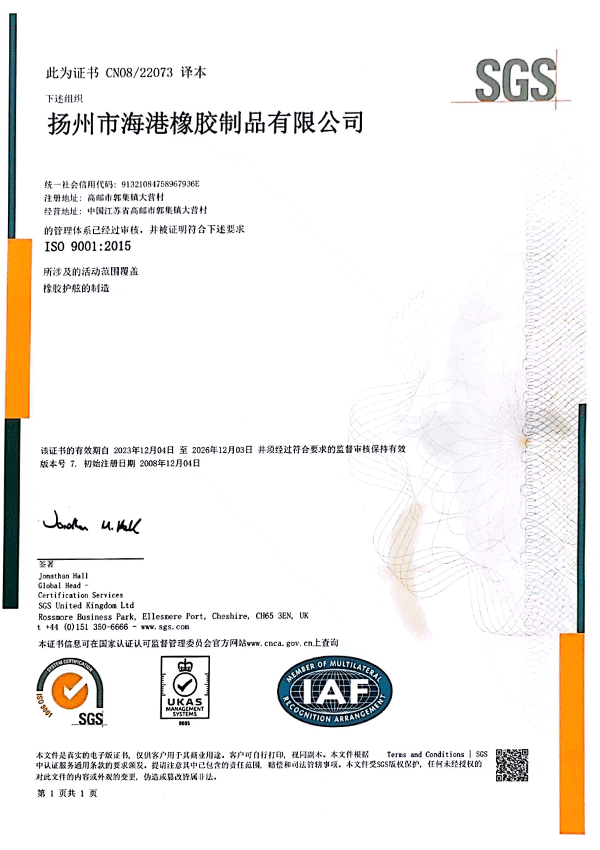 揚州市海港橡膠制品有限公司位于揚州市北郊,依傍于淮江、京滬高速公路,美麗的高郵湖緊鄰我公司,風景秀麗,水、陸暢通。我公司是專業(yè)生產橡膠制品的企業(yè),生產近二十個系列上百種規(guī)格型號的橡膠護舷、橡膠止水帶,為滿足軍用碼頭的需要,又開發(fā)了各種規(guī)格的淺灰色橡膠護舷。擁有千萬元的生產規(guī)模,力量雄厚,檢測設備齊全。